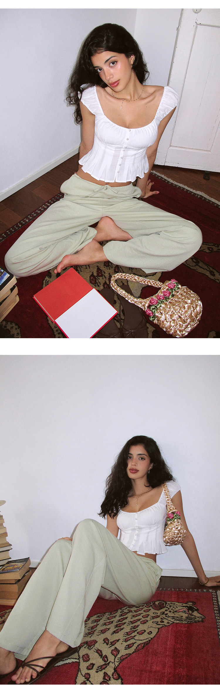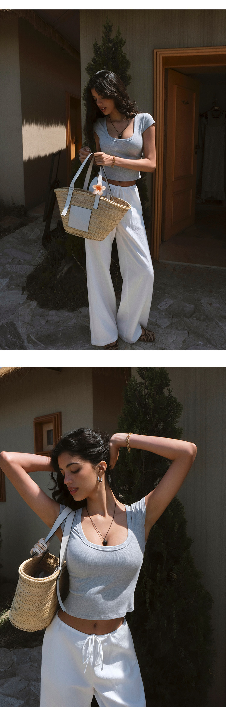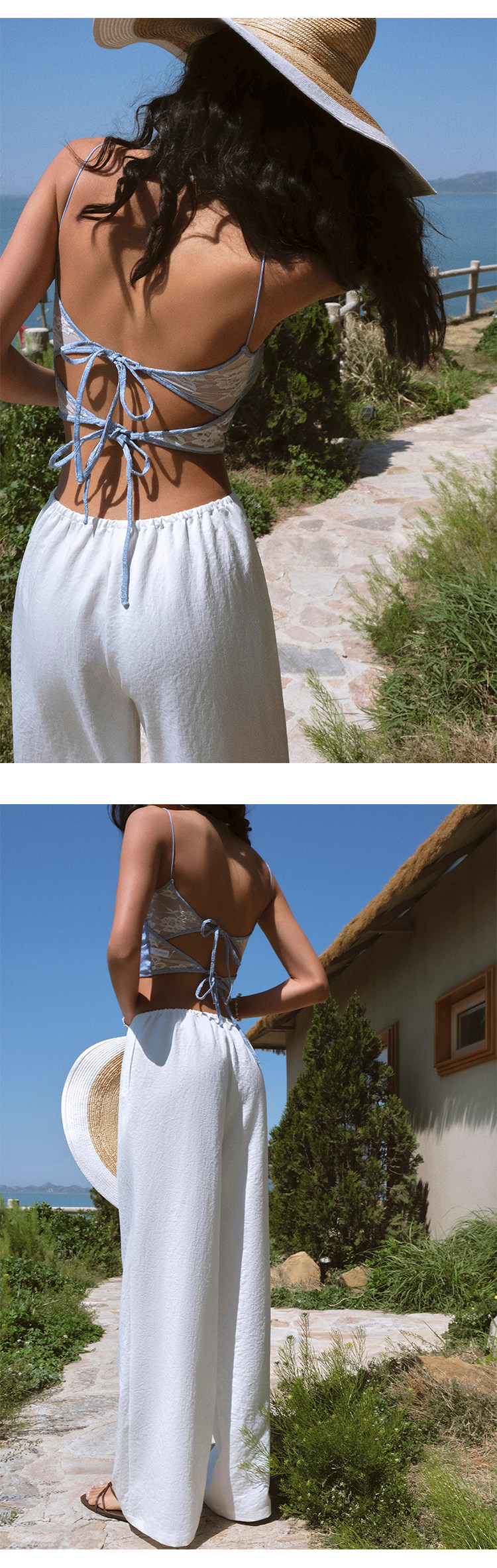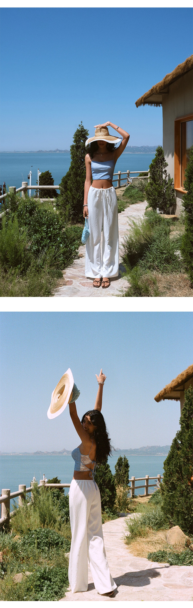 Itsnikar Casual White Pants for Women, Cotton and Linen, Relaxed Fit, Vacation Wide-Leg Pants, Drapey Long Trousers