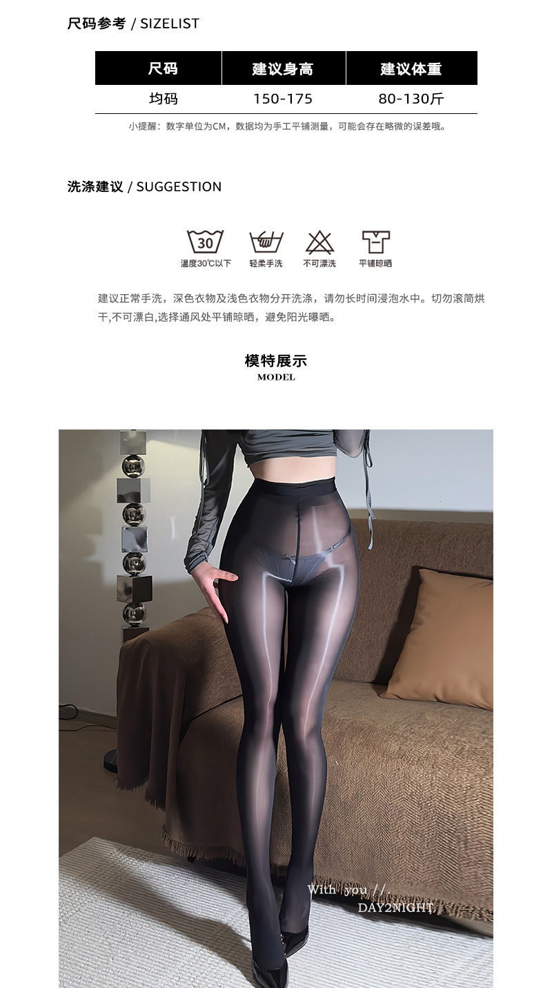 Day2Night'Shiny Black' 912 Needle Stockings Women's Horse Oil Stockings Aurora Black Silk Glossy Thick Black Pantyhose