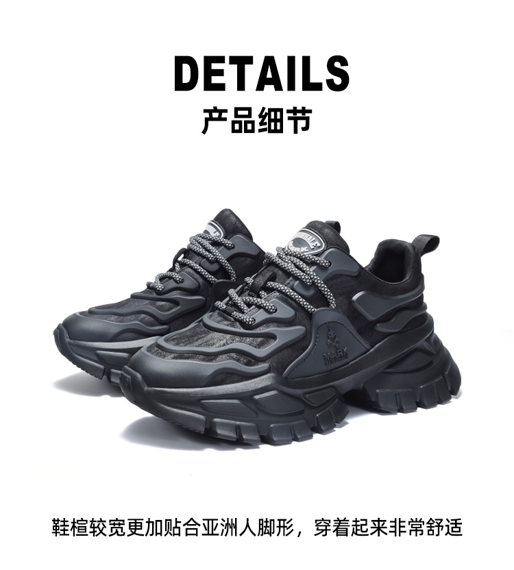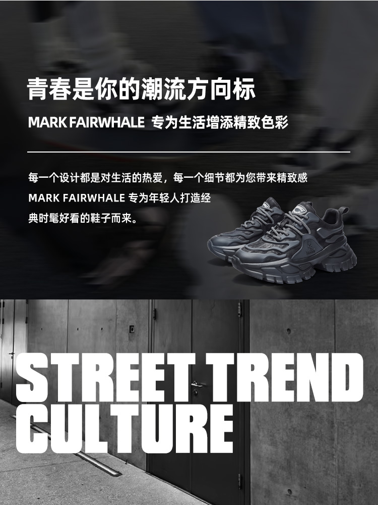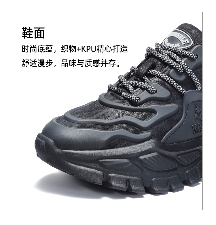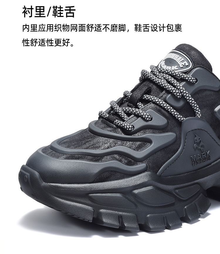 Mark Huafei Dad Shoes Men's 2024 New arrival Genuine Leather Breathable Sports Casual Shoes Increased Thick Sole Black Warrior Men's Shoes